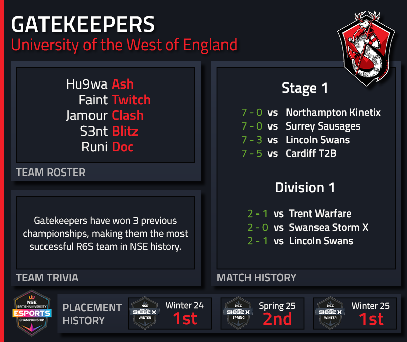 Gatekeepers (University of the West of England) vs Lincoln Swans (University of Lincoln)