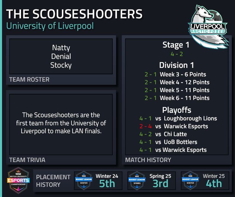 Roehampton Esports (University of Roehampton) vs The Scouseshooters (University of Liverpool)