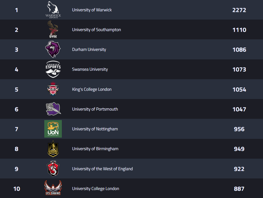 Third place: Warwick Esports (University of Warwick)
