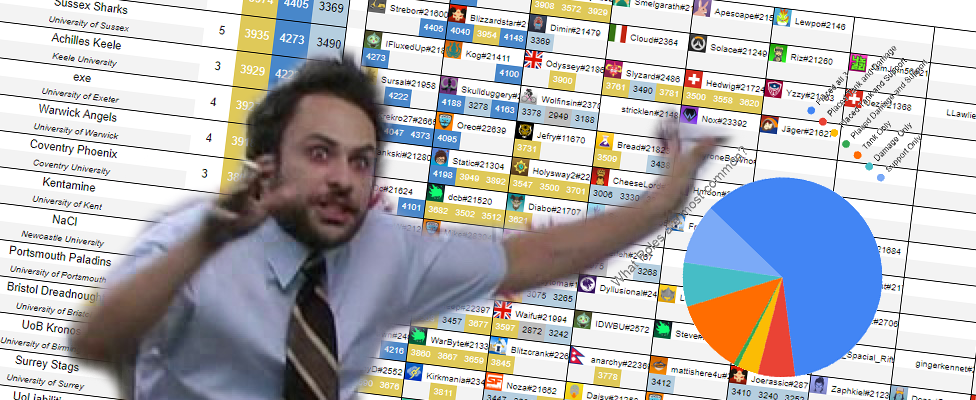 Across 101 teams there were 684 battle tags, 80 of these battle tags are incorrect on the NSE website and do not link to an account. From the 604 battle tags that do link to an account, 246 of them were private profiles meaning that I was unable to gain any info apart from level and player icon. The remaining 358 contained 93 profiles that hadn’t placed this season leaving just 265 profiles containing SR data.