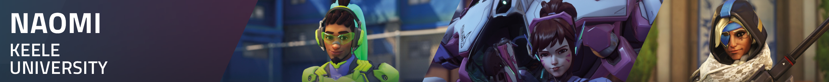 I've had multiple second place finishes in the WNB Cup and have recently become the game rep for Overwatch at Keele University. I've helped to foster positive relations between the Keele team and teams from other universities, especially Cardiff following our team-up in the recent WNB Winter Cup where we placed second. So far this split, I've played all 3 roles in various student competitions (Tank in WNB Cup, DPS in NSE and Support in USS).