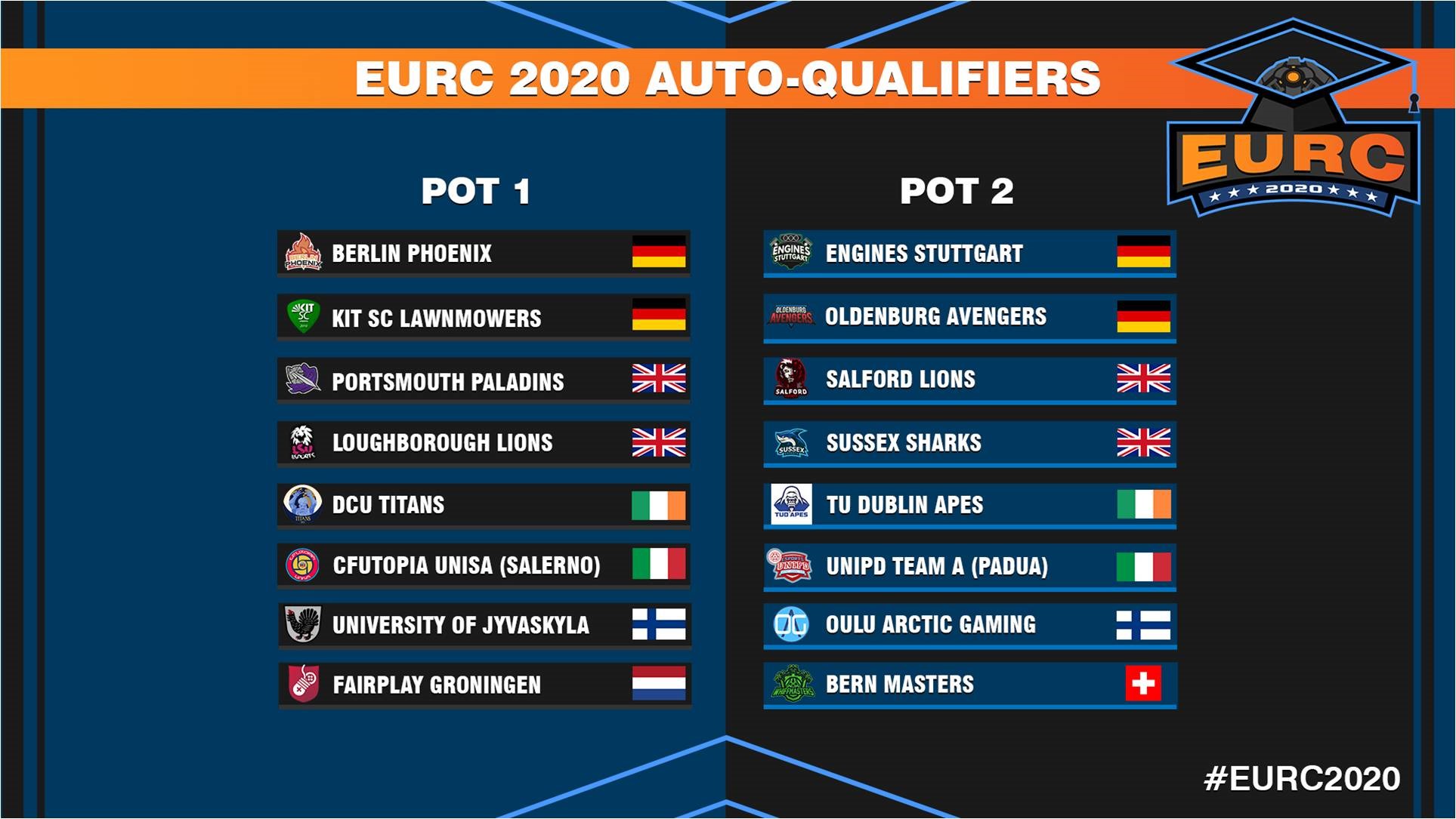 Uniliga Winter Champions Berlin Phoenix (Tigreee, Dot, Gnagflow) have already qualified for EURC 2020 and are considered by many to be the favourites. They will be joined by KIT SC Lawnmowers, Engines Stuttgart and Oldenburg Avengers from Germany.