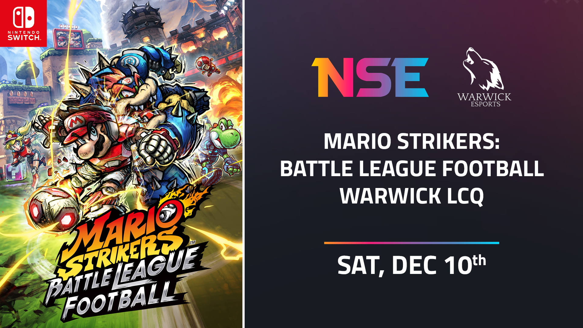 Were you looking for more in-person events from us? Look no further! This year, we are bringing you more live events in the Mario Strikers: Battle League Football University Circuit in both Mario Strikers as well as Super Smash Bros. Ultimate.