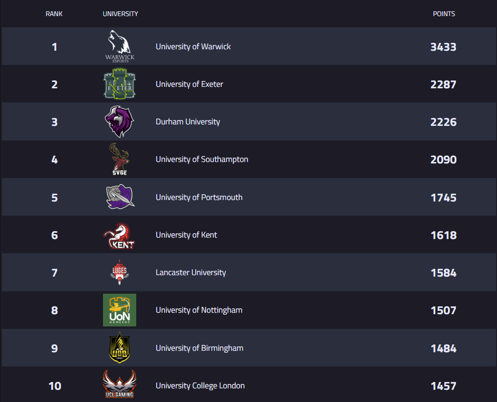 The British University Esports Championship (BUEC) Spring season is over and with it, the 2022/2023 academic year! The games are finished and the points have been totted up. A record number of 111 universities entered the race to be crowned Esports University of the Year. The competition has been even closer than ever this year with second to fourth place being incredibly tight, however one university still reigns supreme amongst the pack.