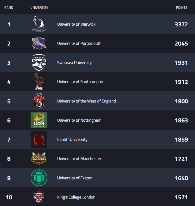 All games are now finished and the points have been totalled. A record number of 117 universities entered the battle to be crowned Esports University of the Year but only one can claim the crown.