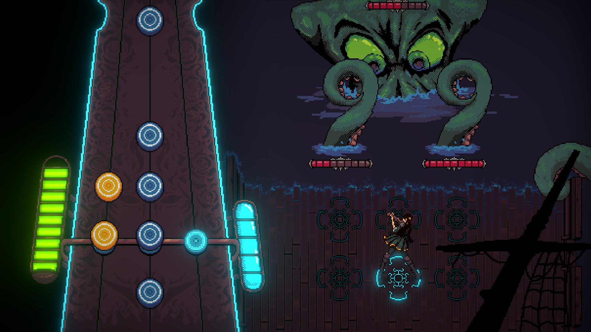 In Defiled West, you play as Dynamite Deadlington, a fierce half-gunslinger, half-ghost. Your job is to clear these towns of rotting mass and restore it to a (somewhat) liveable state. It's a classic zombie shooter with an attractive aesthetic but it was the music that made it stand apart from the other entries as it transported straight into an old-timey west environment, giving that extra immersion.