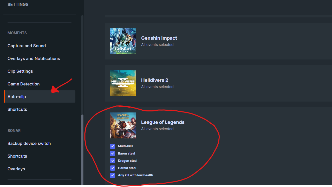 Step 2 - Go to the 'Auto-Clip' in settings and make sure to tick all of the League of Legends Boxes! Now... get a impressive play and let the software do its thing!