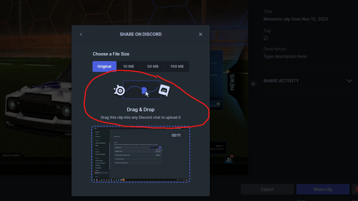 Step 4 - Select Discord and drag and drop into the channel #steelseries-moments in the NSE Discord to be entered!