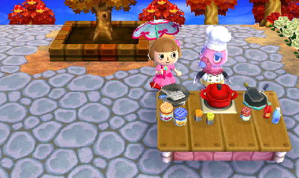 During the event in New Leaf, Franklin would ask players to gather ingredients to help him create four dishes. Each dish had three ingredients and a possible fourth secret ingredient. The ingredients were easy-to-obtain items like fruits, fish, mushrooms, and sea critters. Vinegar, butter, milk, sugar, and flour were special ingredients only available during the event. Villagers would request an item (usually fish) and would trade these special ingredients with you. After helping Franklin with a dish, he would reward you with an item from the Harvest furniture series or a fruit basket and if you completed all four recipes with the correct secret ingredients, you would be rewarded with special cornucopia item.