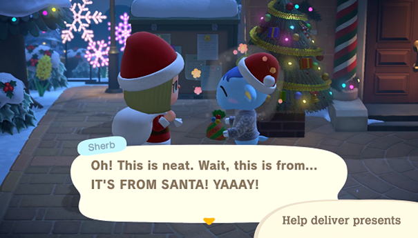 It seems you will still need to dress up as Santa for the upcoming New Horizons Toy Day, and presents will be wrapped using a festive red and green wrapping paper as seen by the present held by Sherb the goat (see above image).