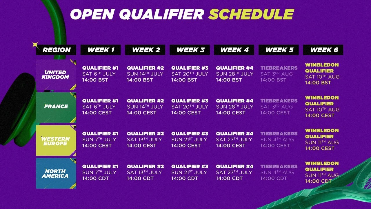 The top 16 from each region will go on to play in the Wimbledon Qualifiers for a chance to be the top 2 and go to the LAN finals held in Wimbledon, London, England, in September.