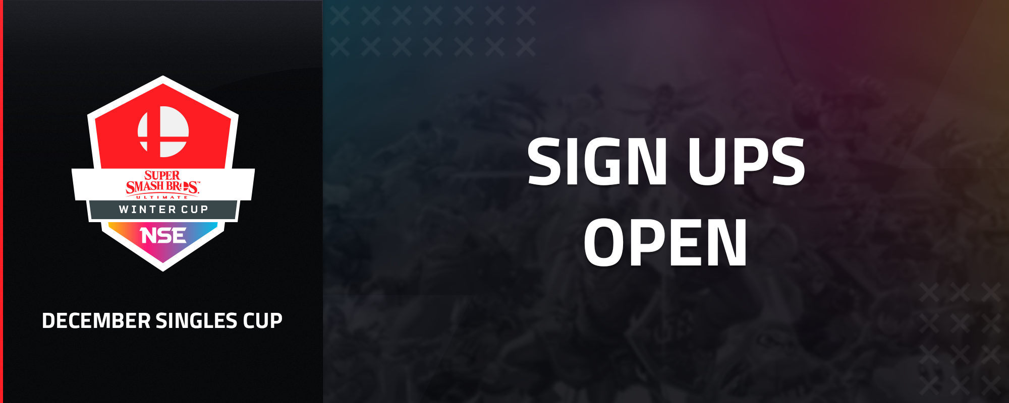 Super Smash Bros. Ultimate December Cup is the Third of three cups being ran this term. Tournament will run using double elimination format with all matches will be played in one day.