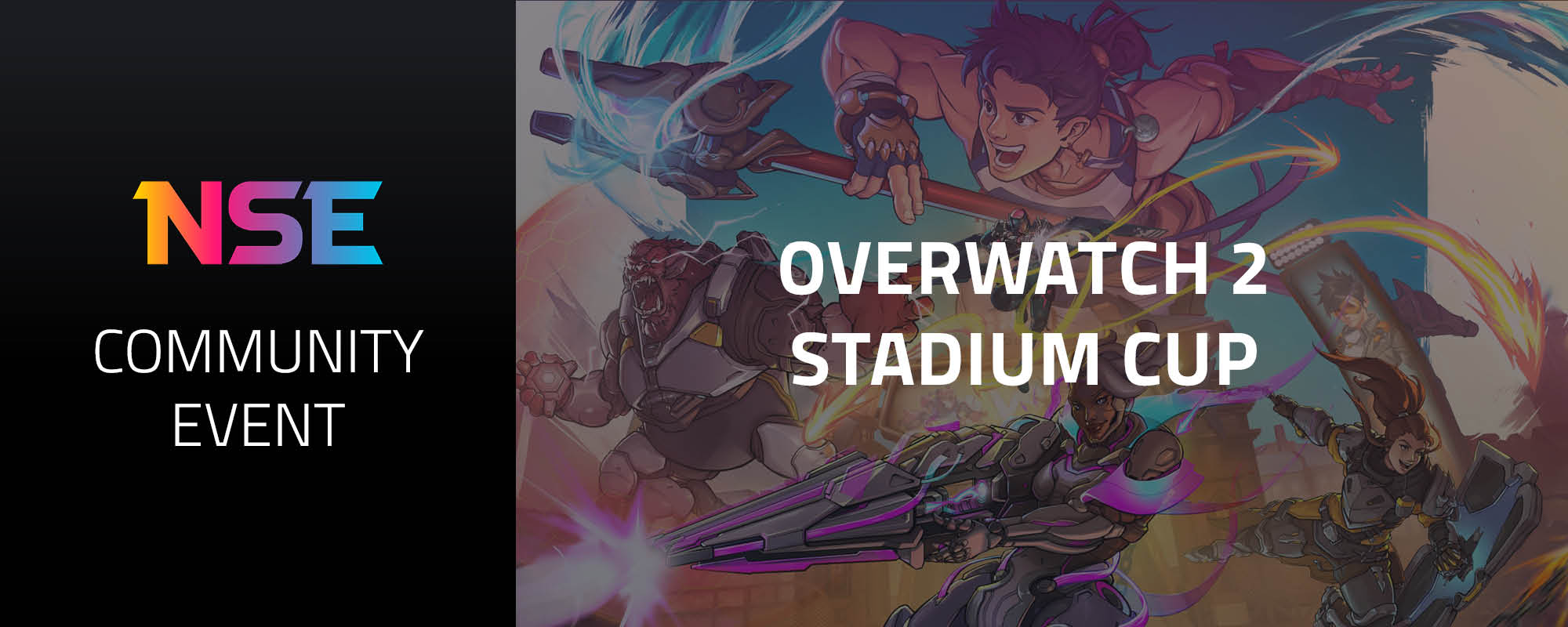 Introducing NSE's first Overwatch 2 Stadium Cup! Earn cash, upgrade your character and battle it out for the victory.